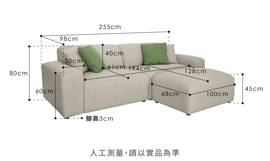 尺寸:沙發 255 x 98 x 80 cm / 椅凳 100 x 66 x 47 cm