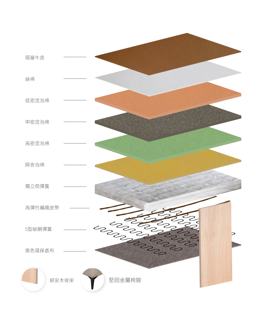 原物料:澳大利亞頭層牛皮 / 12層內材 / 金屬椅腳