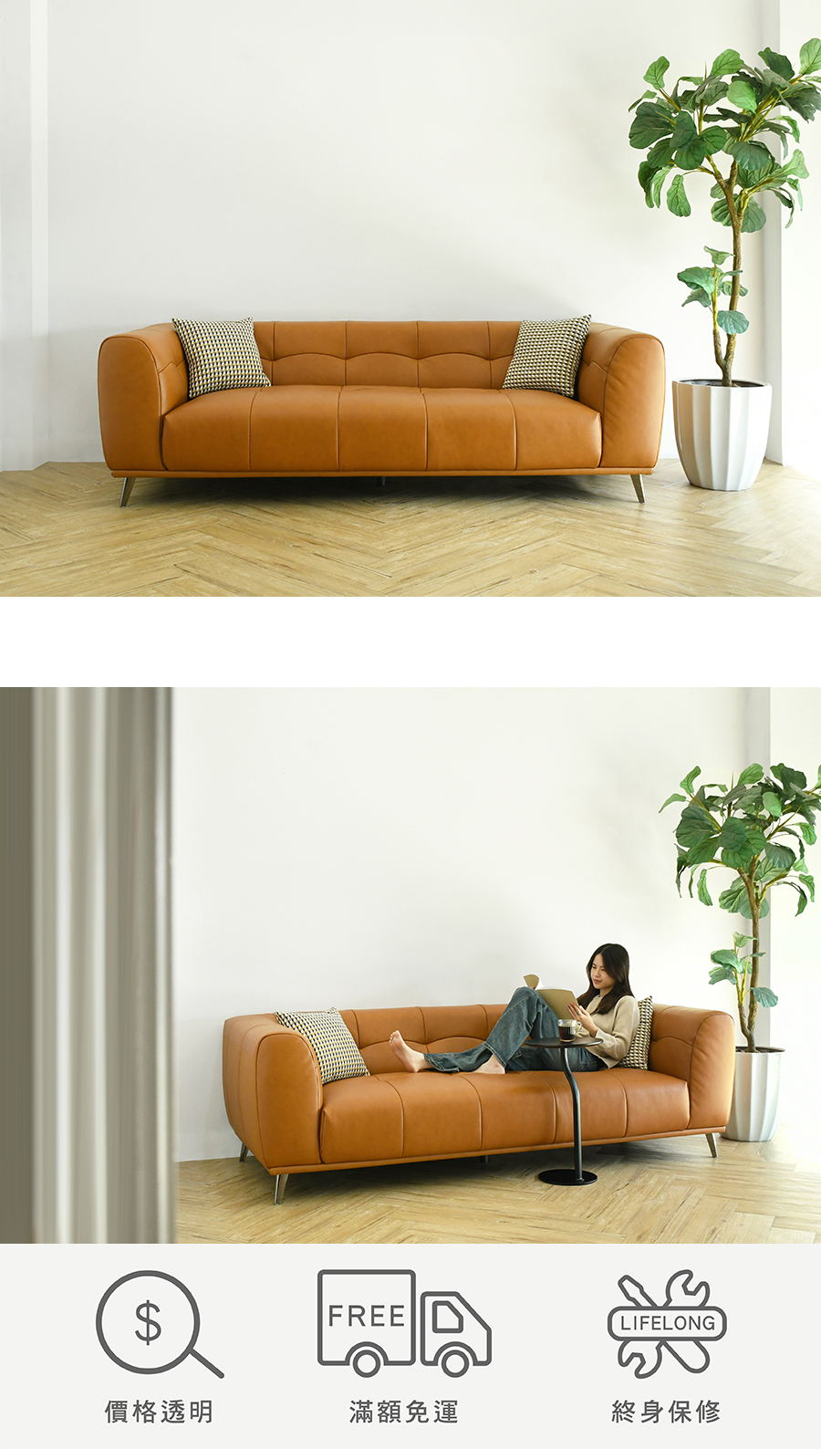 ▲此款沙發因尺寸較大,購買前請先丈量電梯尺寸,與官方line上確認後再下單(官方line ID:@pjt9764g)▲