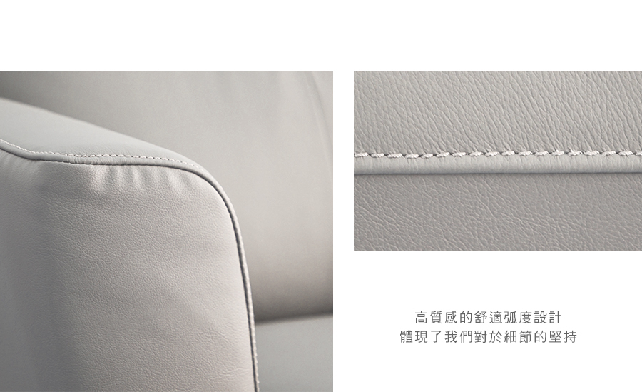 經常接觸的椅面部分,採用透氣、柔軟的荷蘭頭層牛皮,堅韌耐用,呈現自然變化;其餘部分為PVC,防止受潮及黴菌滋生