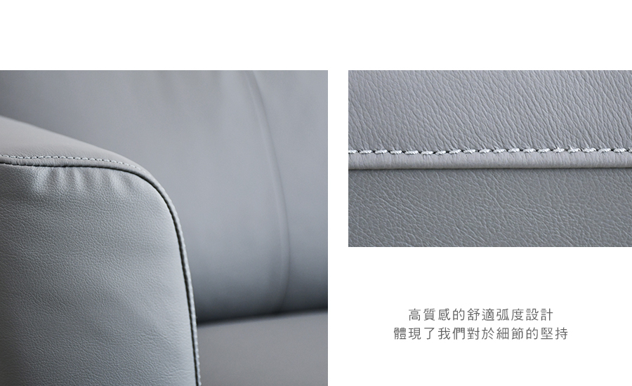 經常接觸的椅面部分,採用透氣、柔軟的荷蘭頭層牛皮,堅韌耐用,呈現自然變化;其餘部分為PVC,防止受潮及黴菌滋生