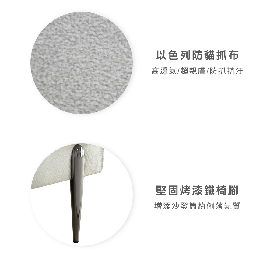 原物料:以色列防貓抓布 / 12層內材 / 烤漆鐵腳