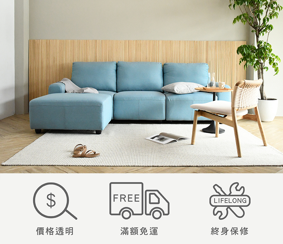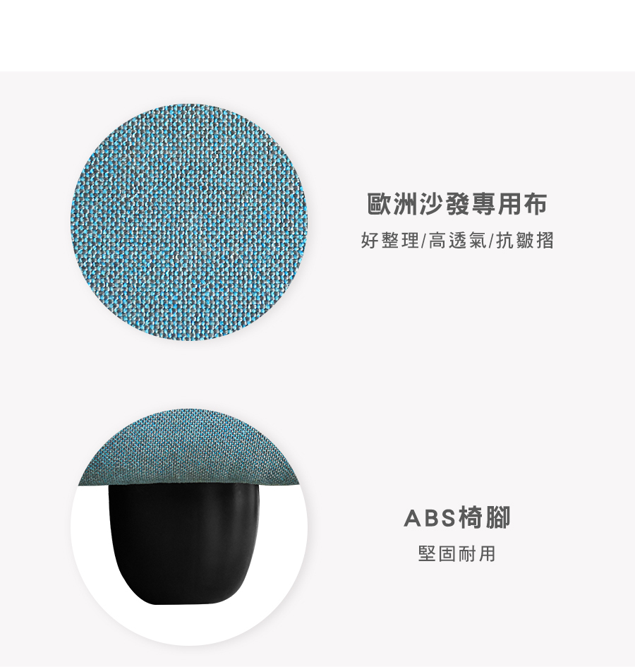 原物料:歐洲沙發專用布 / 12層內材 / ABS椅腳