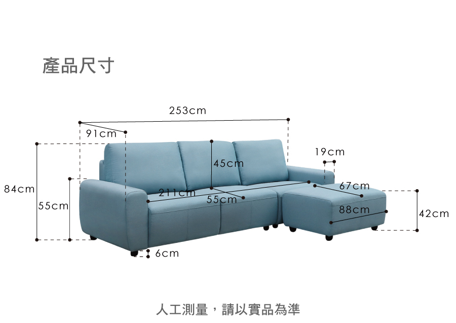 尺寸:沙發:253 x 91 x 84 cm/椅凳:88 x 67 x 42 cm