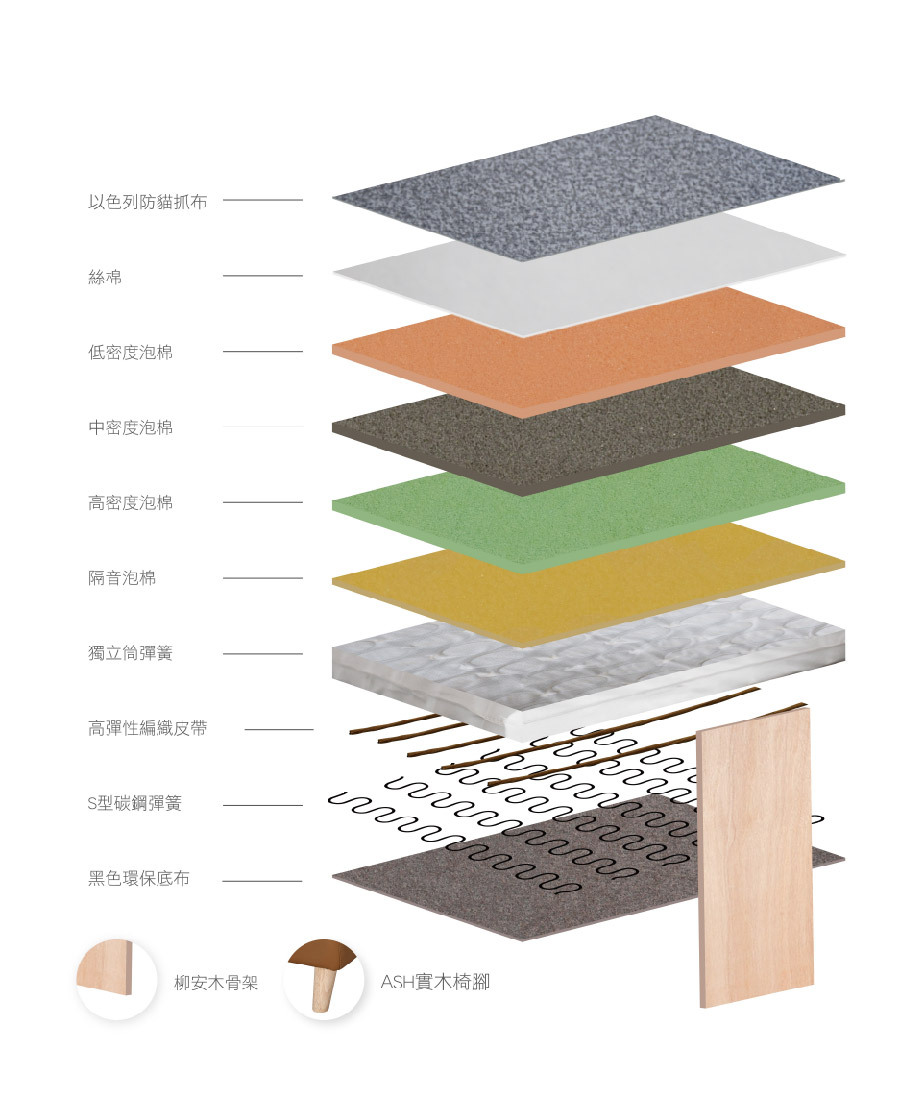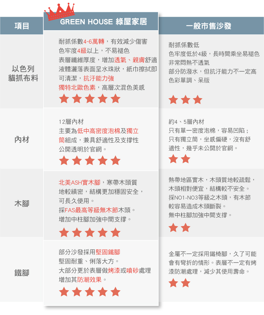 原物料:以色列防貓抓布 / 12層內材 / 烤漆鐵腳