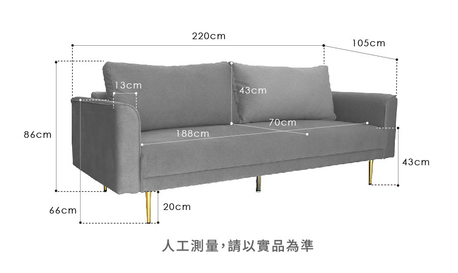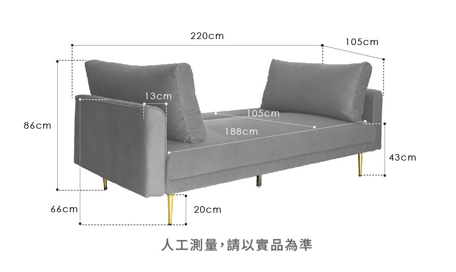 尺寸:沙發220 x 91 x 86 cm / 沙發床 220 x 105 x 86 cm