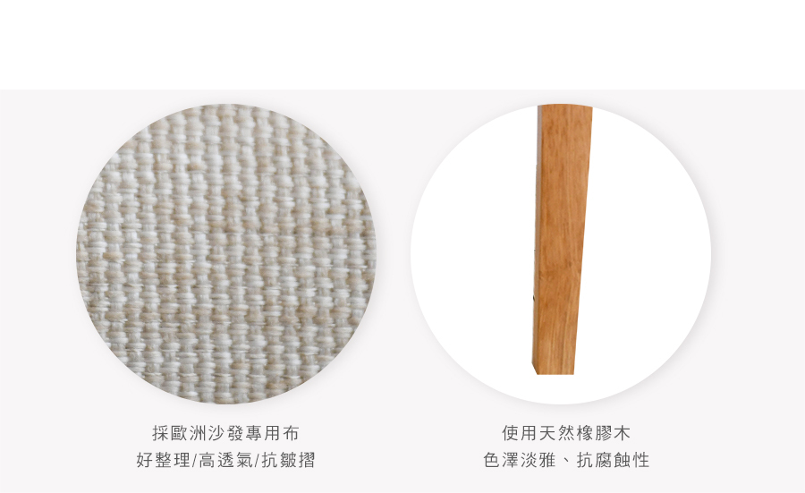 原物料:歐洲沙發專用布 / 橡膠木椅腳