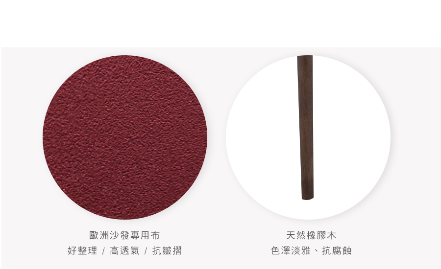 原物料:歐洲沙發專用布 / 天然橡膠木椅腳