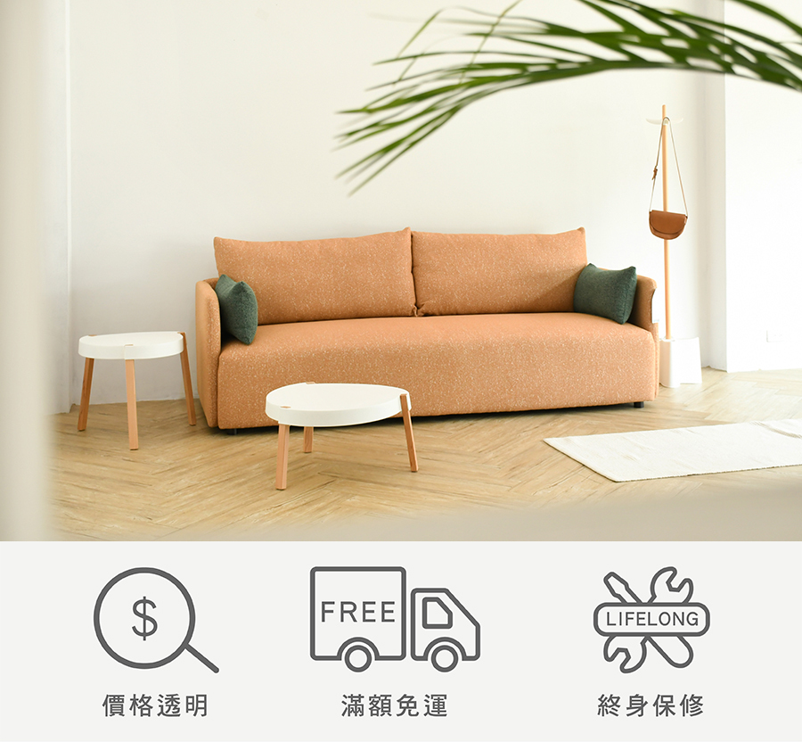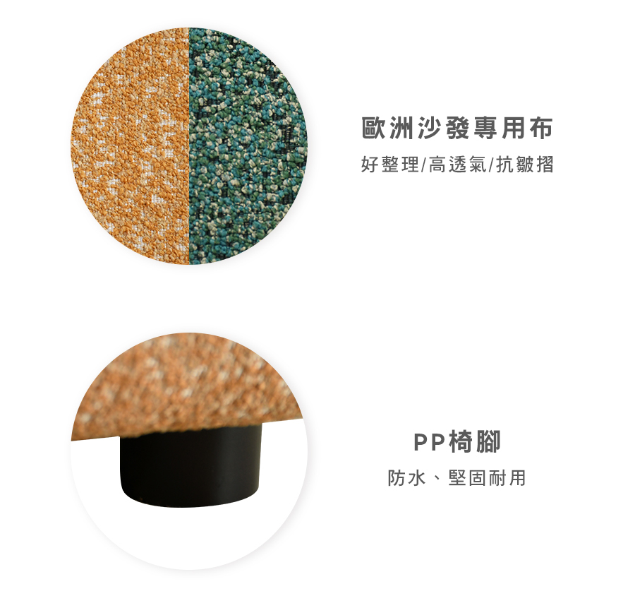 原物料:歐洲沙發專用布 / 12層內材 / PP椅腳