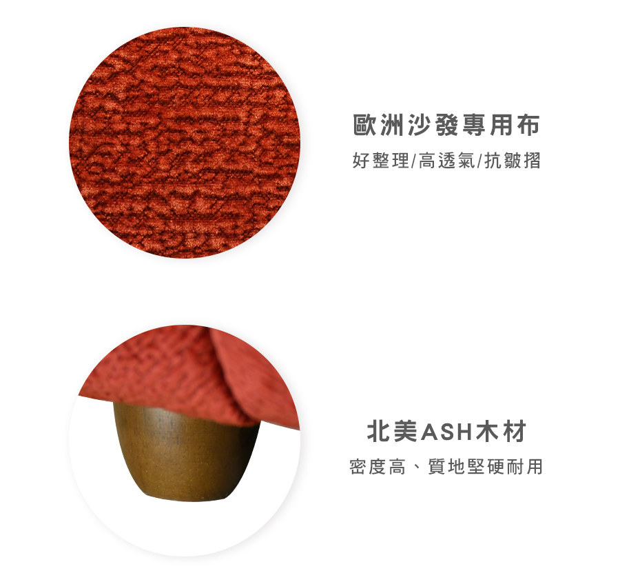 原物料:歐洲沙發專用布 / 12層內材 / ASH椅腳