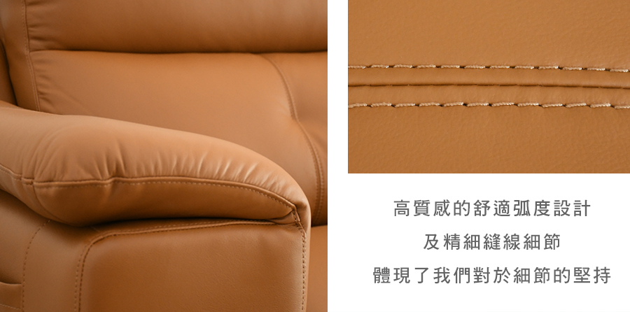 經常接觸的椅面部分,採用透氣、柔軟的荷蘭頭層牛皮,堅韌耐用,呈現自然變化;其餘部分為PVC,防止受潮及黴菌滋生
